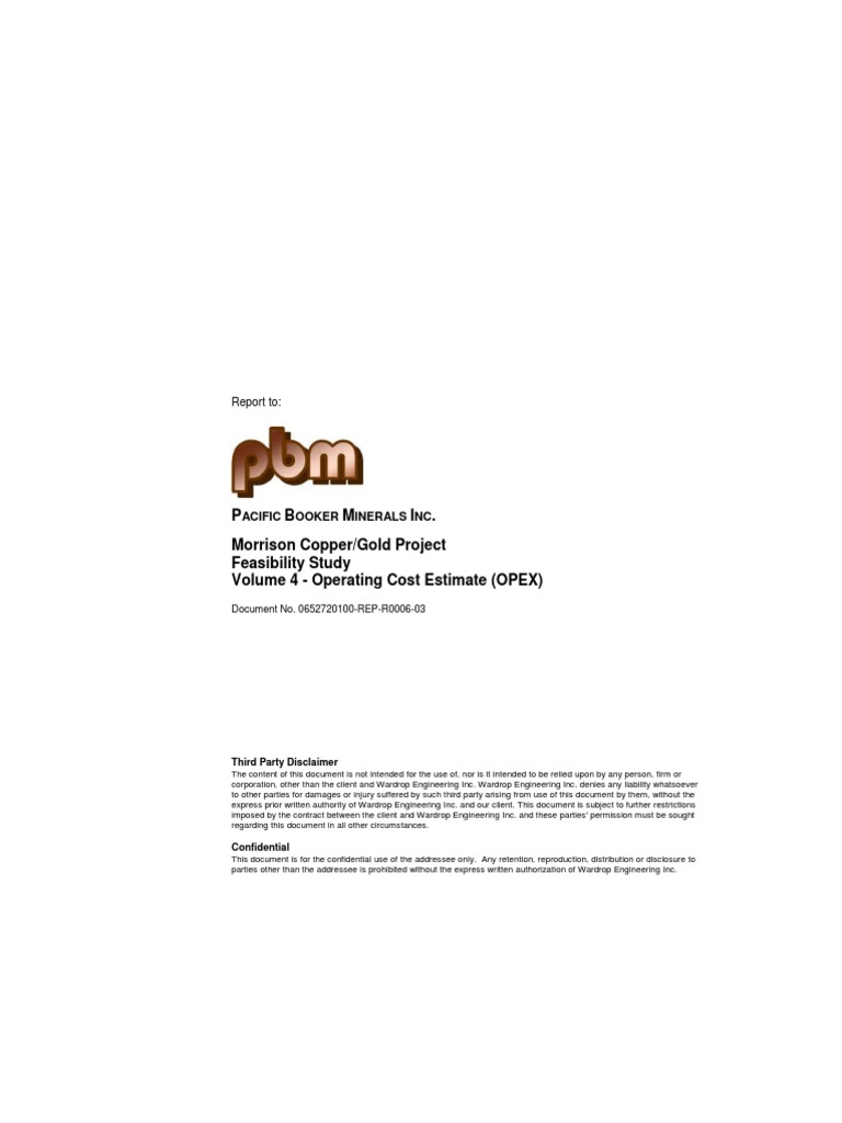 In September 2006, Pacific Booker Minerals Inc. (PBM) commissioned Wardrop