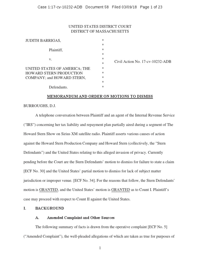 segment at issue on The Howard Stern Show website for a few weeks, the tax-related