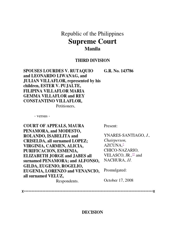 SPOUSES LOURDES V. RUTAQUIO G.R. No. 143786