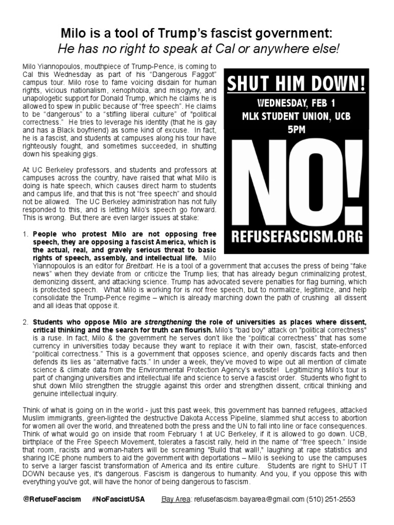 Milo is a tool of Trump’s fascist government: