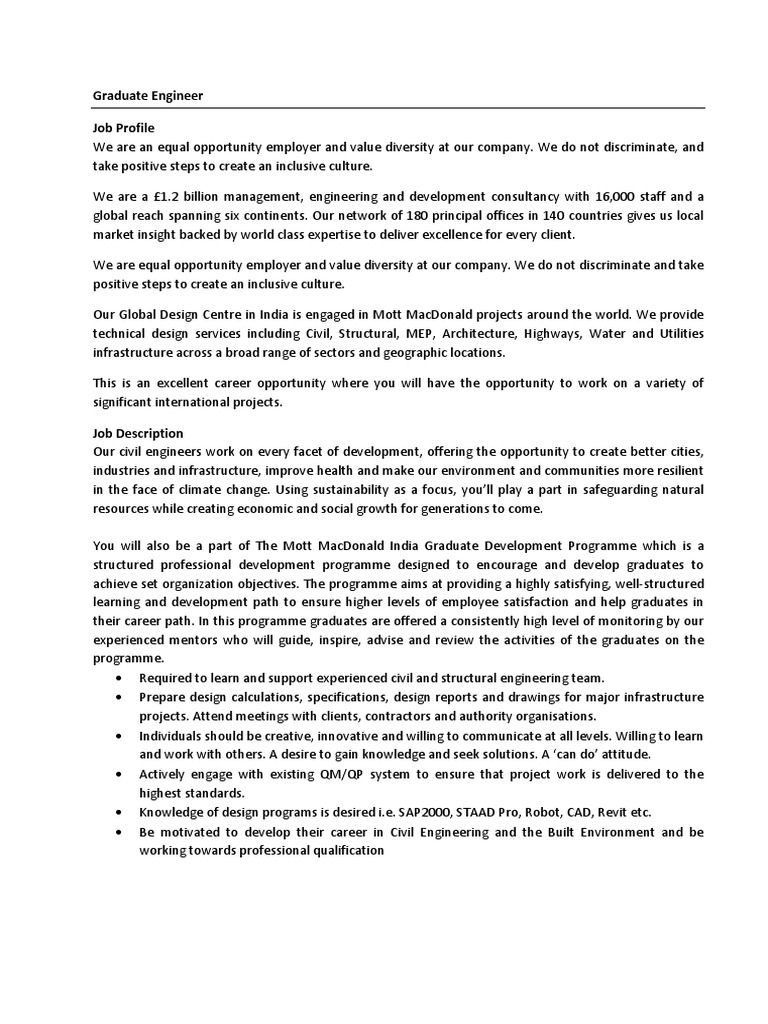 You will also be a part of The Mott MacDonald India Graduate Development Programme which is a