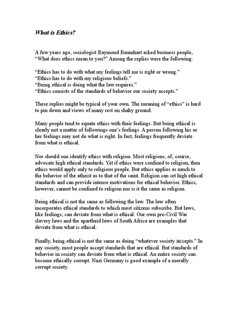 behavior in society can deviate from what is ethical. An entire society can