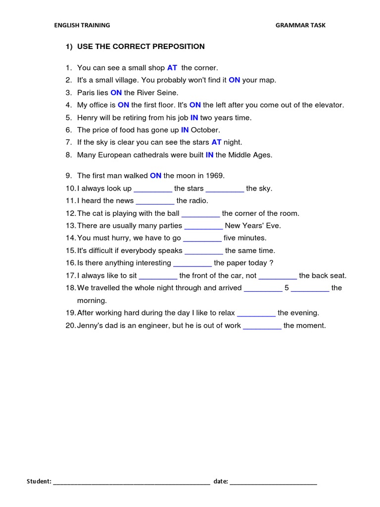 ENGLISH TRAINING GRAMMAR TASK