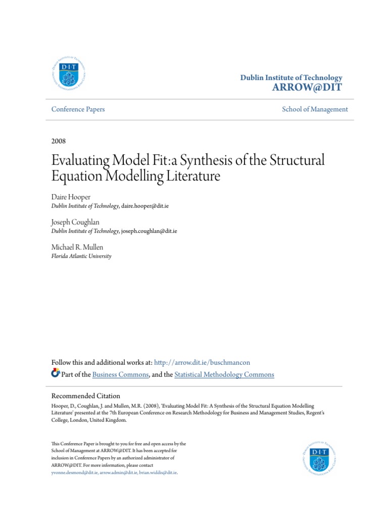 Hooper, D., Coughlan, J. and Mullen, M.R. (2008), ‘Evaluating Model Fit: A Synthesis of the Structural Equation Modelling