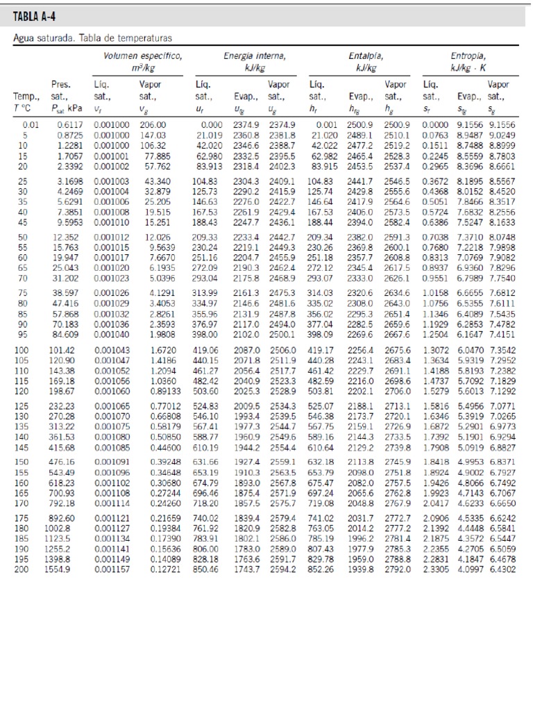 ‘Agua saturada. Tabla de temperaturas.