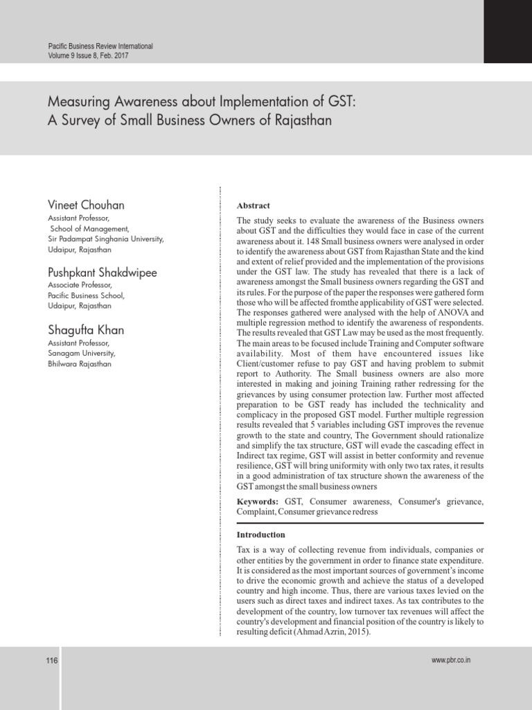 for them to study and follow the tax rules. Small business owners of various 5 cities of Rajasthan state.