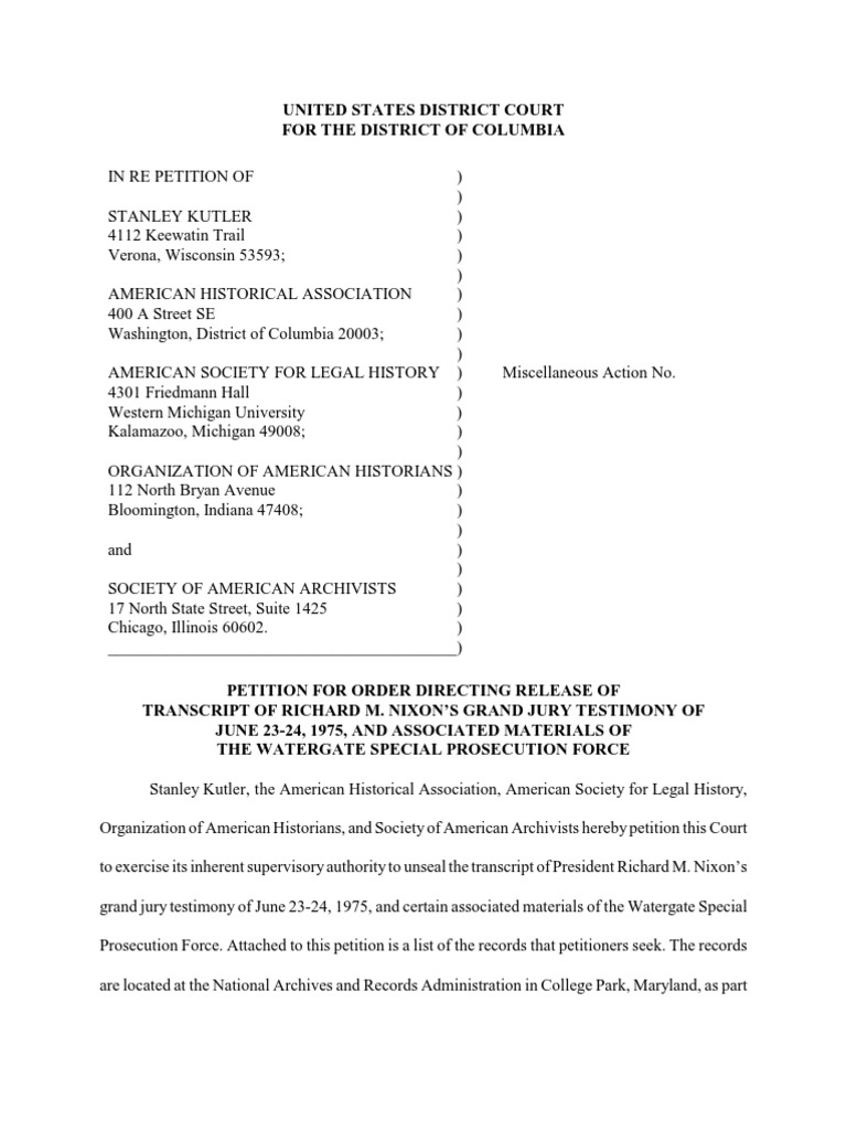 Historian Stanley Kutler's Petition To Have Nixon's Secret Testimony Released
