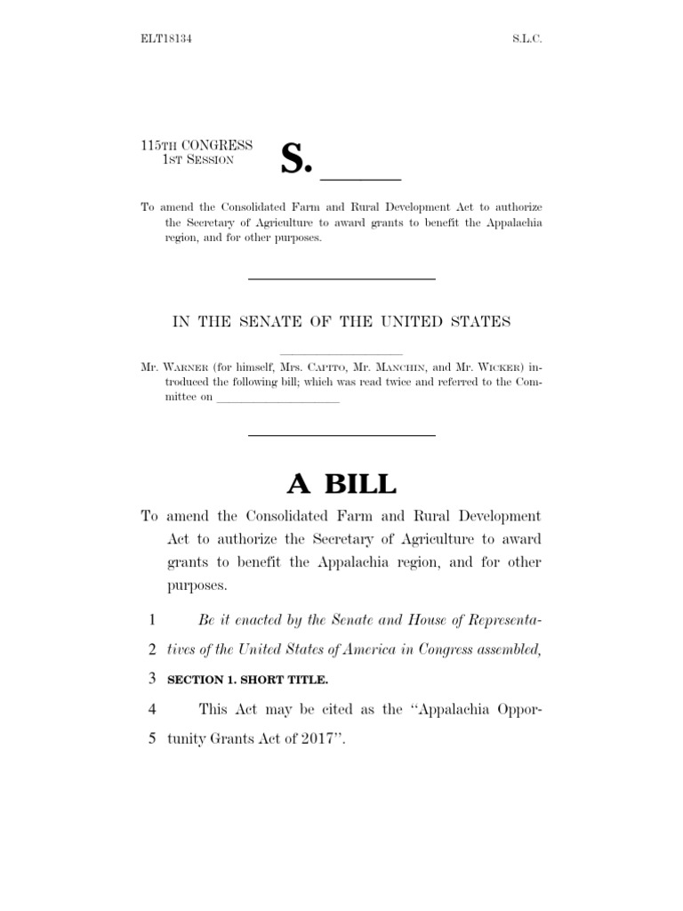 To amend the Consolidated Farm and Rural Development Act to authorize the Secretary of Agriculture to award grants to benefit the Appalachia region, and for other purposes.