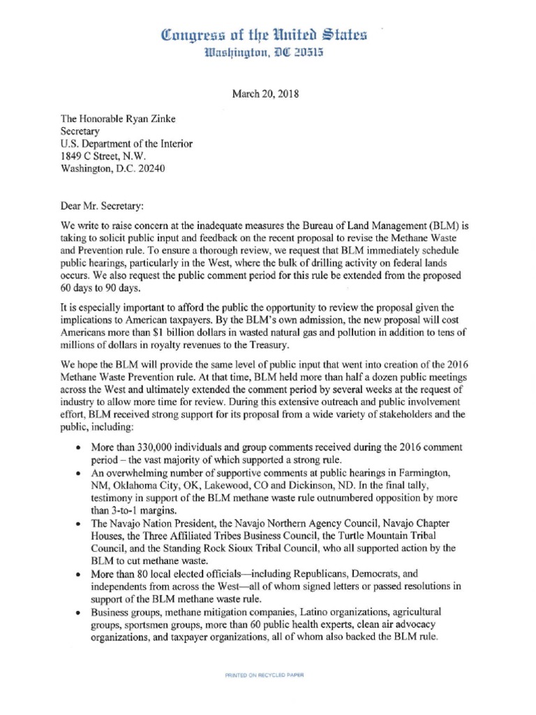 Led by U.S. Senator Michael Bennet (D-CO), U.S. Senator Tom Udall, and Representatives Raul Grijalva, Alan Lowenthal, Diana DeGette, and Jared Polis, sent a letter to Interior Secretary Zinke requesting a thorough review of public comment on the proposal to revise the Methane Waste and Prevention Rule.