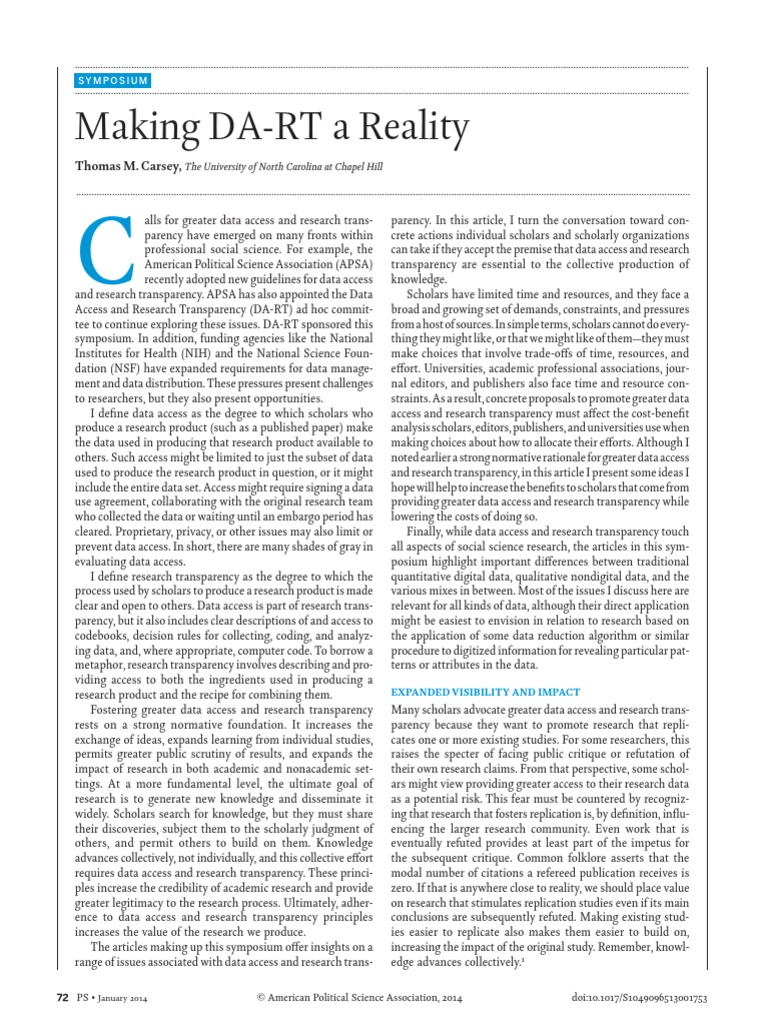 at the DA-RT conference held at Syracuse University, June Vision, Todd J. 2010. “Open Data and The Social Contract of Scientific Pub-