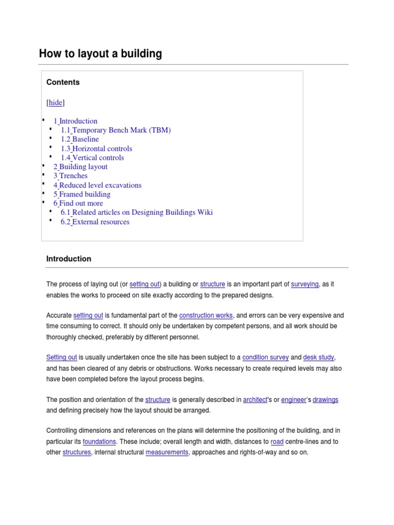 The process of laying out (or setting out) a building or structure is an important part of surveying, as it