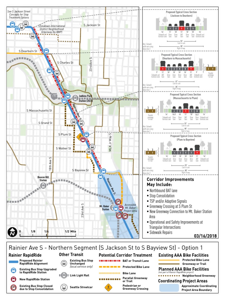 Rainier Ave S - Northern Segment (S Jackson St to S Bayview St) - Option 1