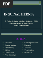 10. Inguinal Hernia: A protrusion of part of the tissue or vescus through the inguinal region of