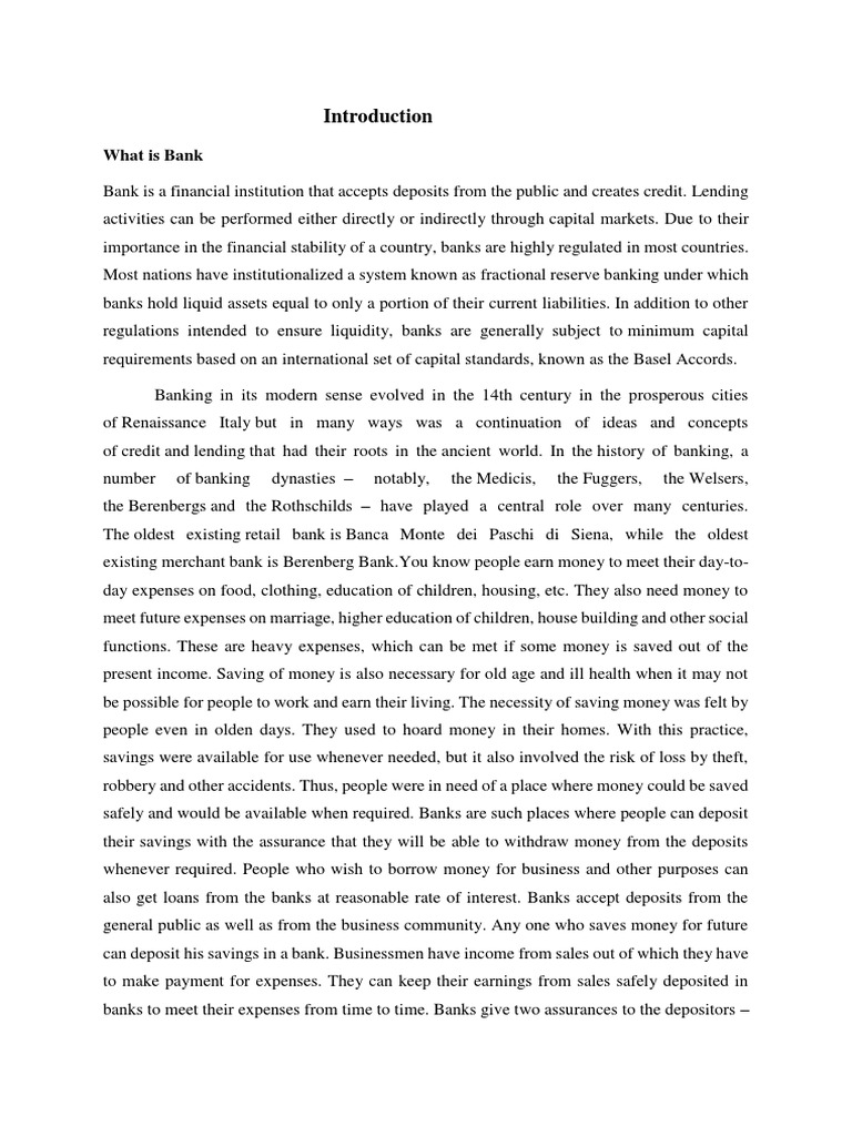 on by banks are called banking activity. ‘Banking’ as an activity involves acceptance of