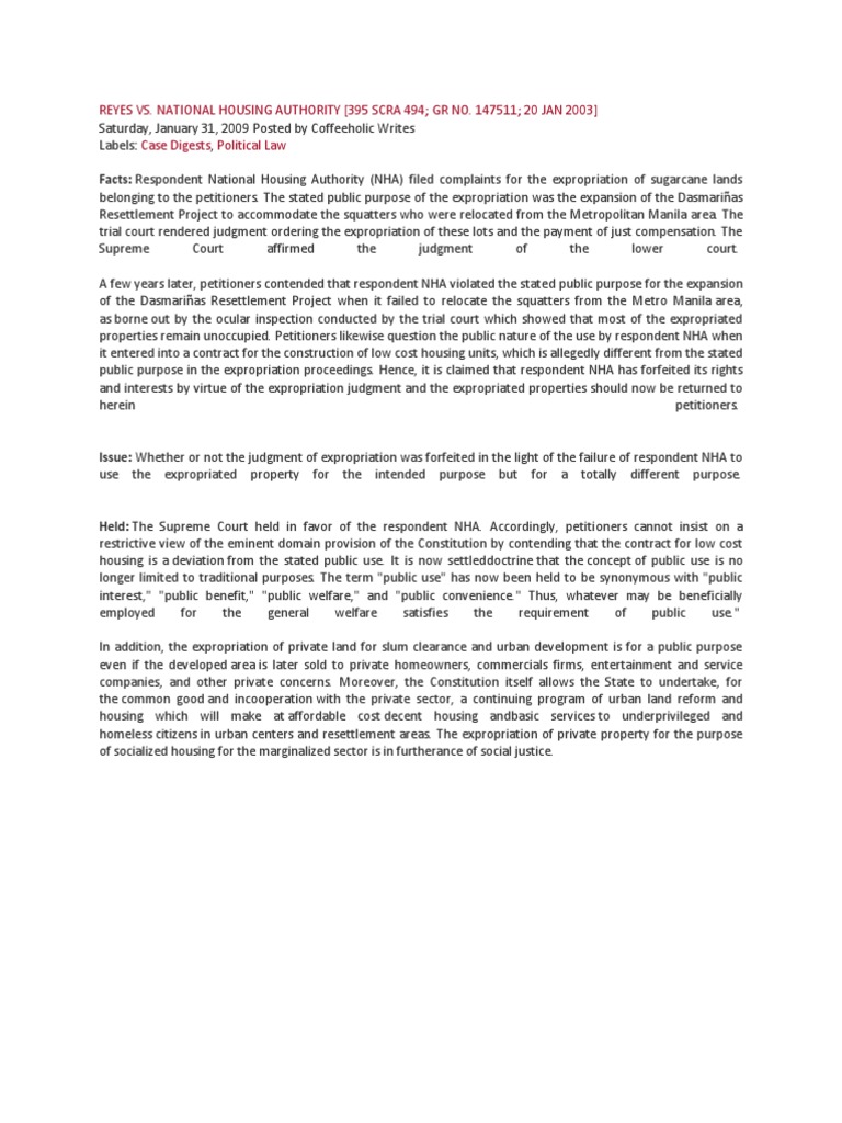 A few years later, petitioners contended that respondent NHA violated the stated public purpose for the expansion