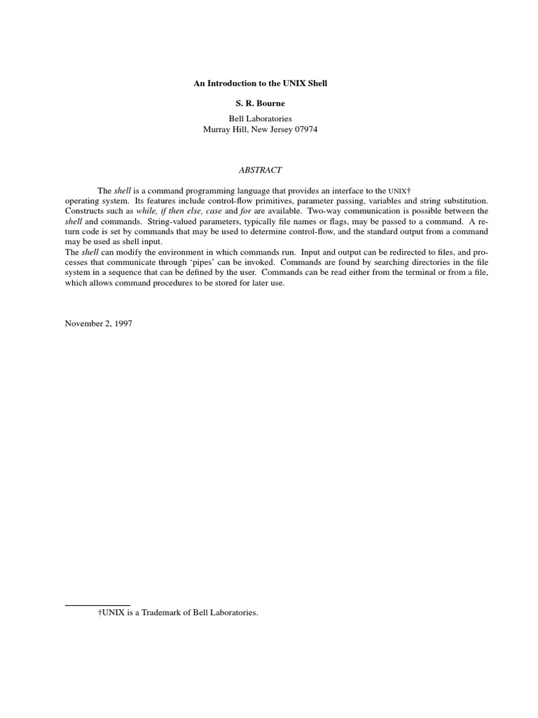 the PWB/UNIX shell, pwb shell mashey unix some features having been taken from both. Similarities also