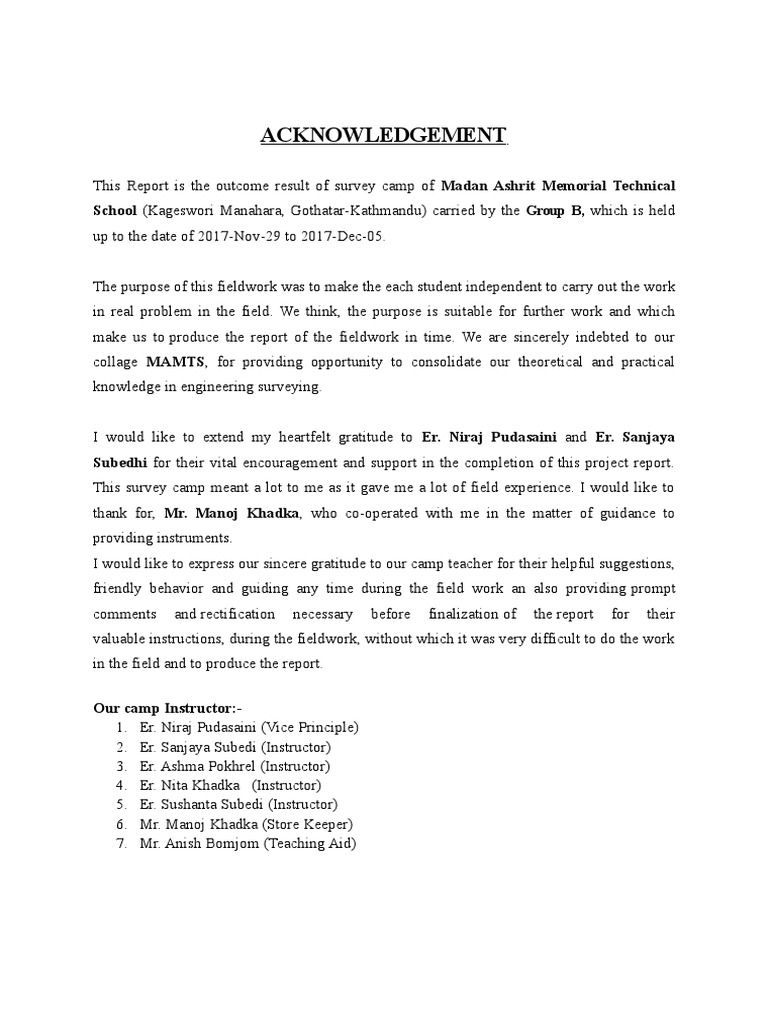 This Report is the outcome result of survey camp of Madan Ashrit Memorial Technical