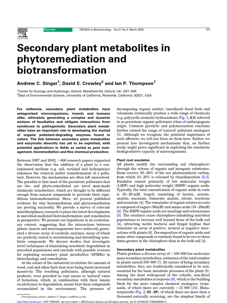 rently limited to inferring enzymatic function through Role of secondary metabolites in xenobiotic remediation