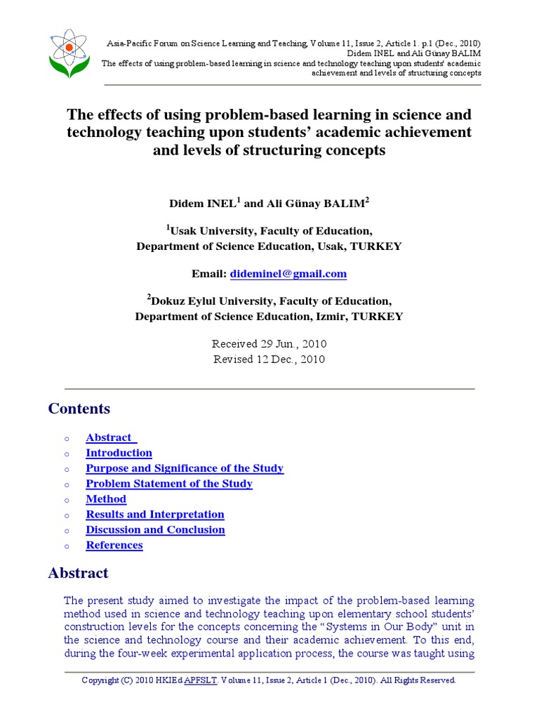 The effects of using problem-based learning in science and technology teaching upon students' academic