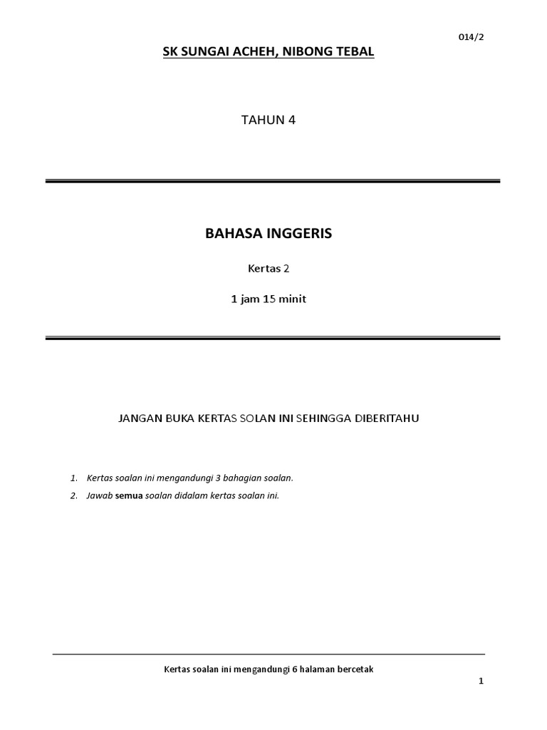JANGAN BUKA KERTAS SOLAN INI SEHINGGA DIBERITAHU