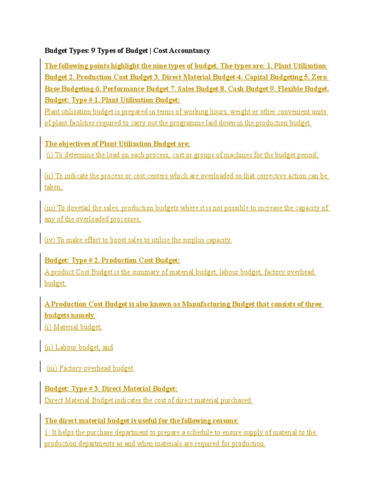 Budget Types: 9 Types of Budget | Cost Accountancy