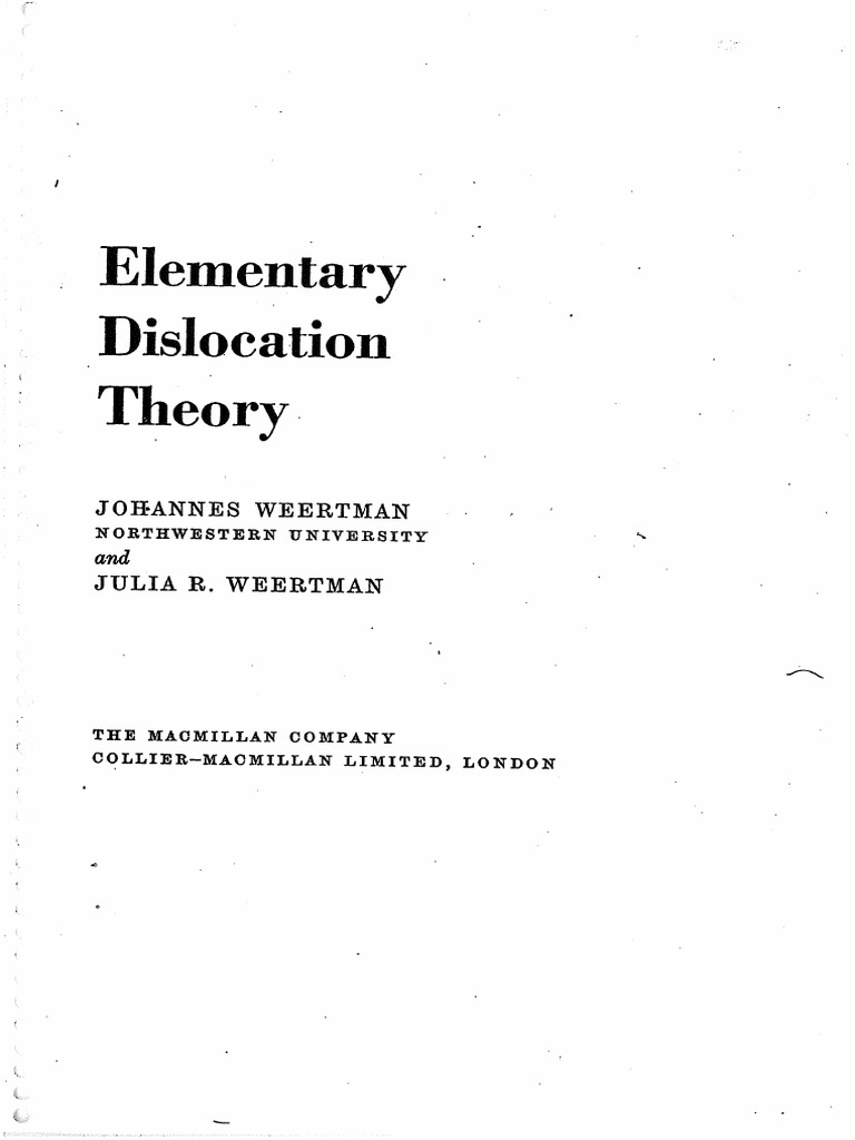Elementary Dislocation TheoryMacmillan Series in Materials Science