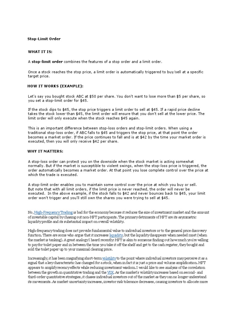 traditional stop-loss order, if ABC falls to $45 and triggers the stop price, at that point the order