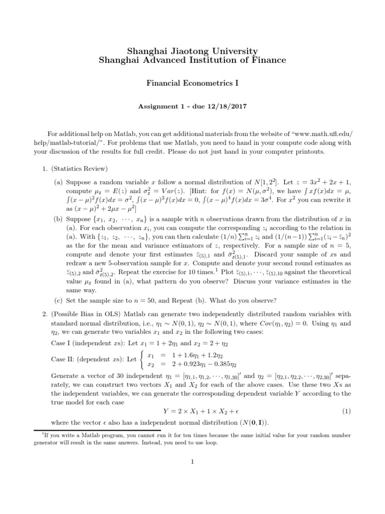 2. (Possible Bias in OLS) Matlab can generate two independently distributed random variables with