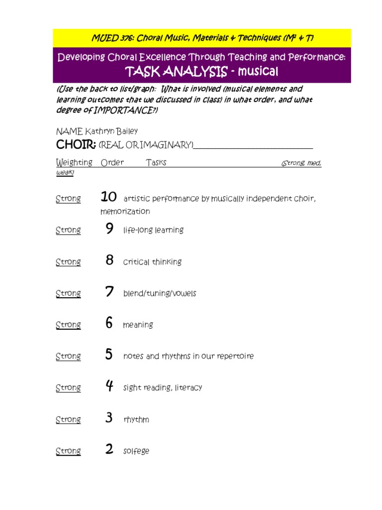 TASK ANALYSIS - musical