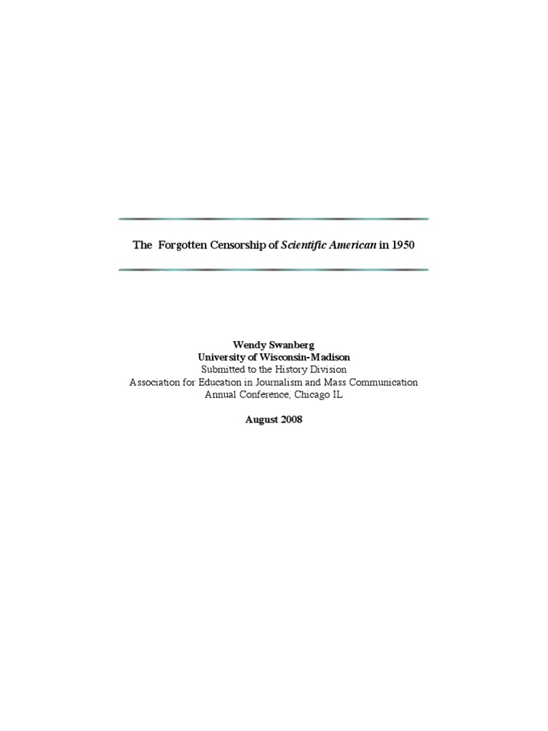 series on the worldwide implications of the controversial nuclear weapon -- commonlycalled the “H-bomb” -- which had yet to be perfected.The magazine’s publisher Gerard Piel objected, insisting the article in question containedonly information that previously had been made public elsewhere. While Piel ultimately concededto government demands, his was an early voice of dissent in the relative government-presscomplicity of the early Cold War. Before long the AEC’s censorship animated a simmeringdiscourse among scientists, journalists, and government officials about warfare in the atomic age,and about the parameters of press freedom in the uneasy peace after World War II. The debatesthat followed in 1950 resemble the more famous discussions that arose nearly thirty years later,with the 1979 censorship of