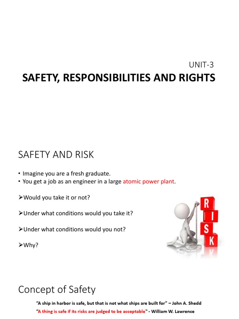 • A thing is NOT SAFE if it exposes us to unacceptable danger or hazard