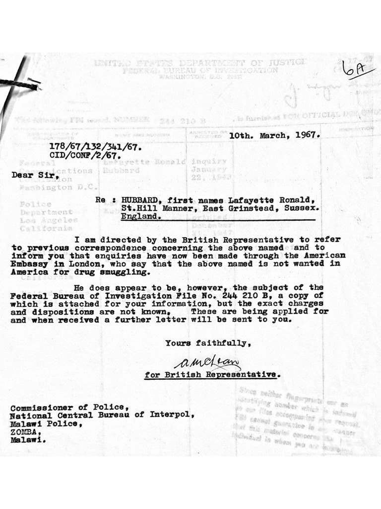 Scotland Yard replies to Malawi inquiry about L. Ron Hubbard