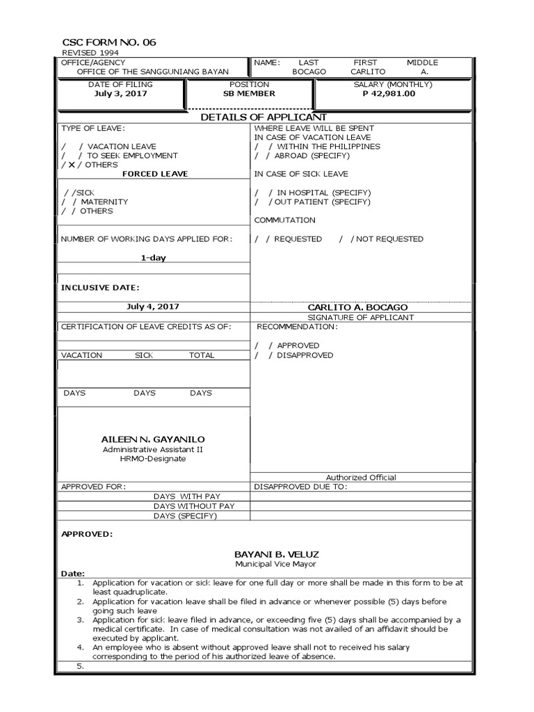 CSC FORM NO.