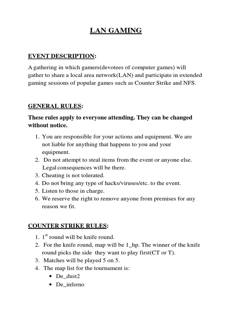 COUNTER STRIKE RULES: