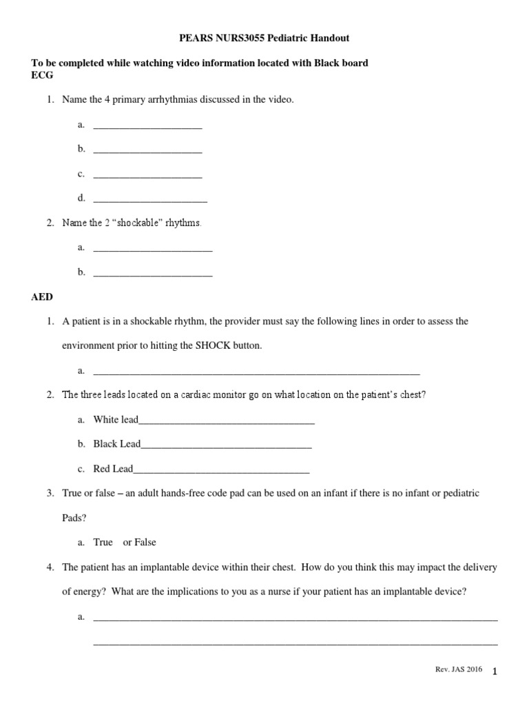 PEARS NURS3055 Pediatric Handout