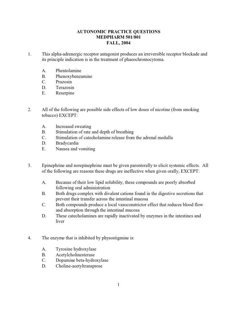 AUTONOMIC PRACTICE QUESTIONS