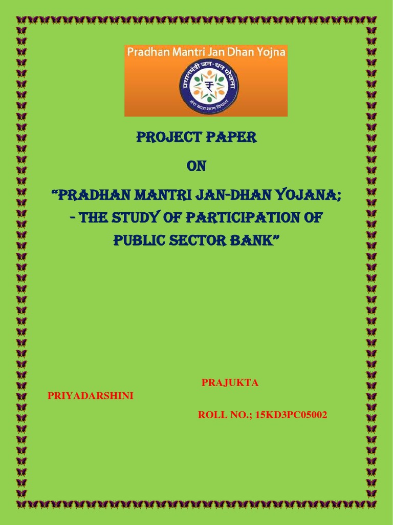 Project Paper ON "Pradhan Mantri Jan-Dhan Yojana - The Study of Participation of Public Sector Bank"