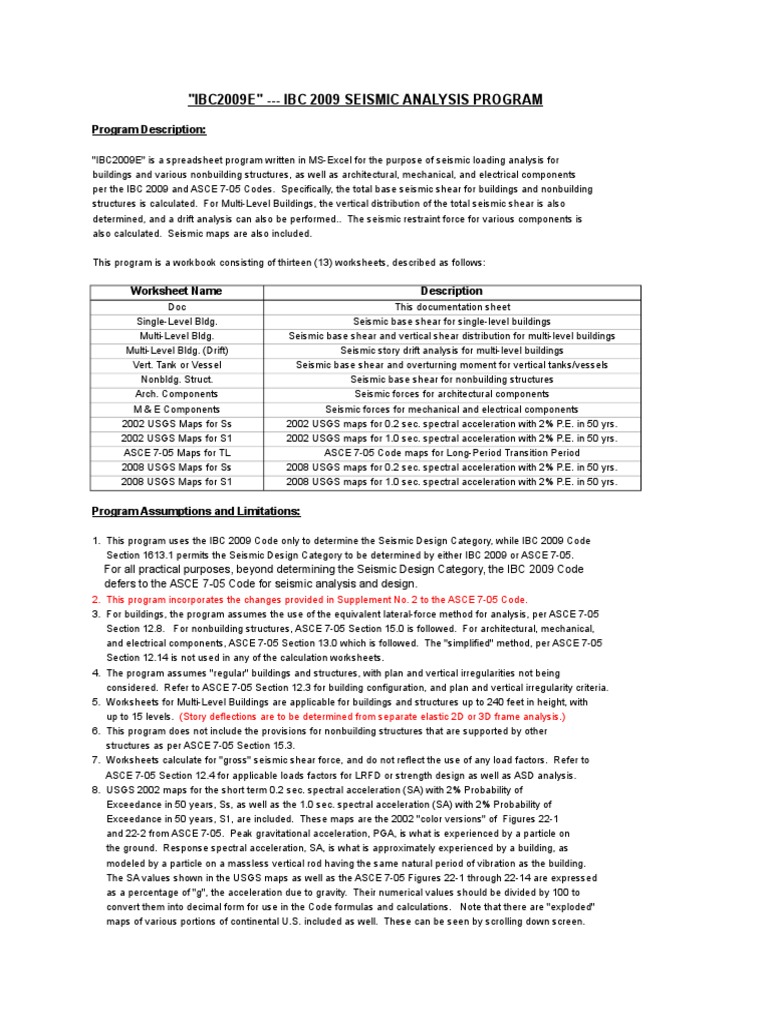 1. This program uses the IBC 2009 Code only to determine the Seismic Design Category, while IBC 2009 Code