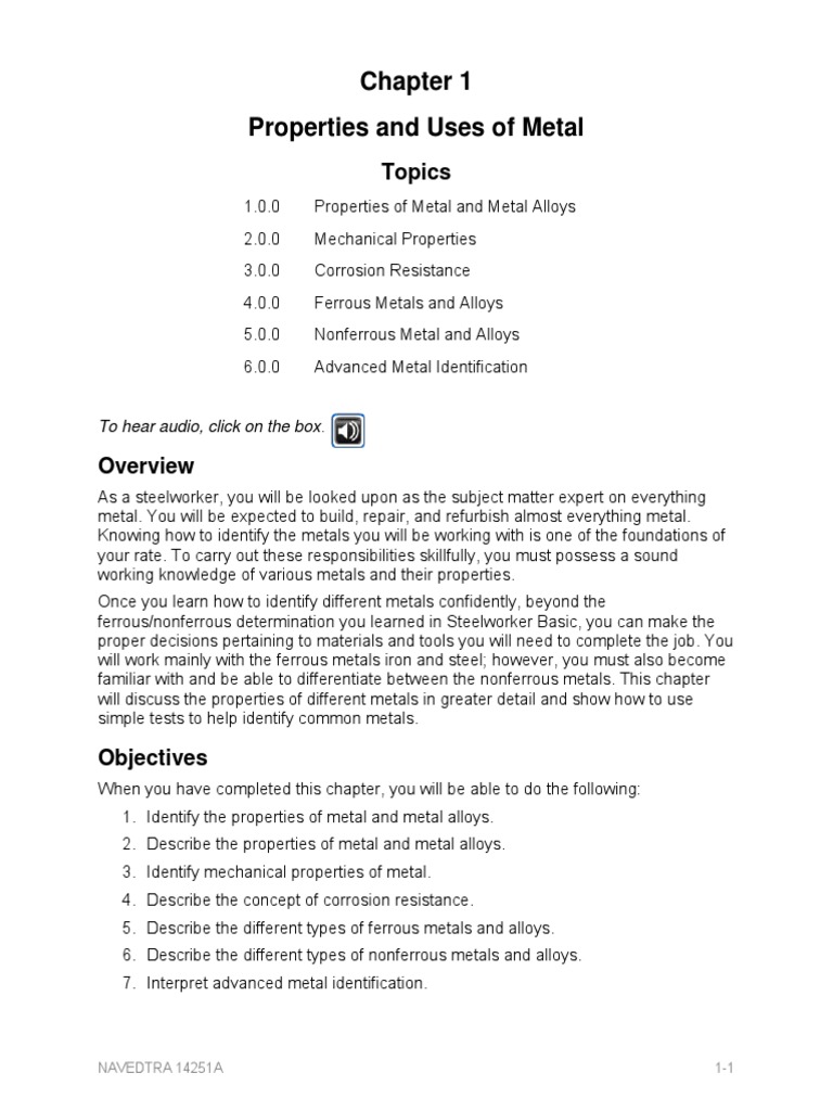 1.0.0 PROPERTIES of METAL and METAL ALLOYS