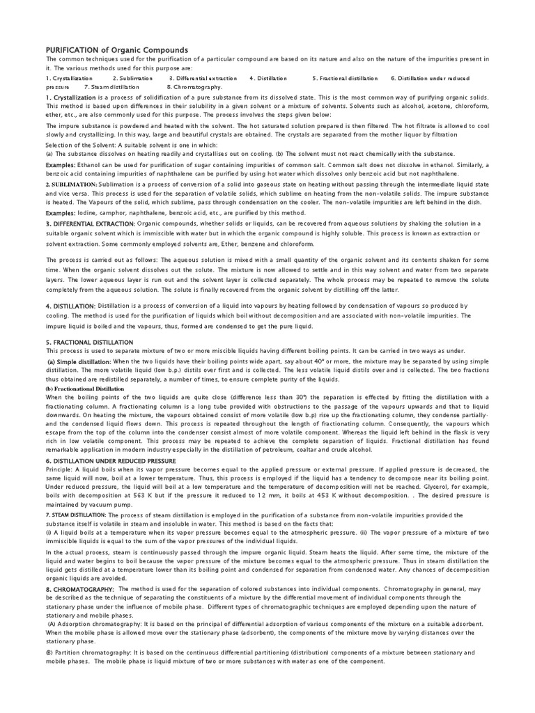 PURIFICATION of Organic Compounds
