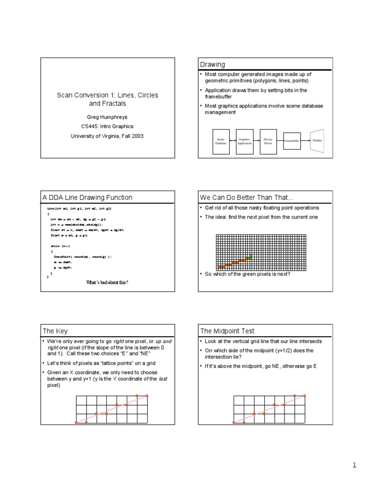 the next one cheaply! int incrE = 2*dy, incrNE = 2*(dy-dx); evaluation at