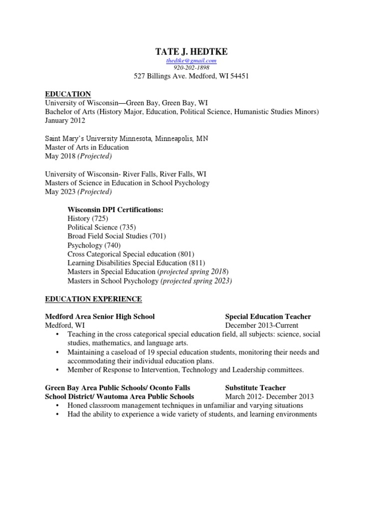 Masters in Special Education (projected spring 2018)