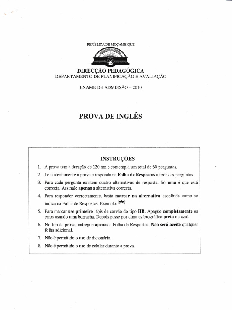 PROVA DE INGLES
