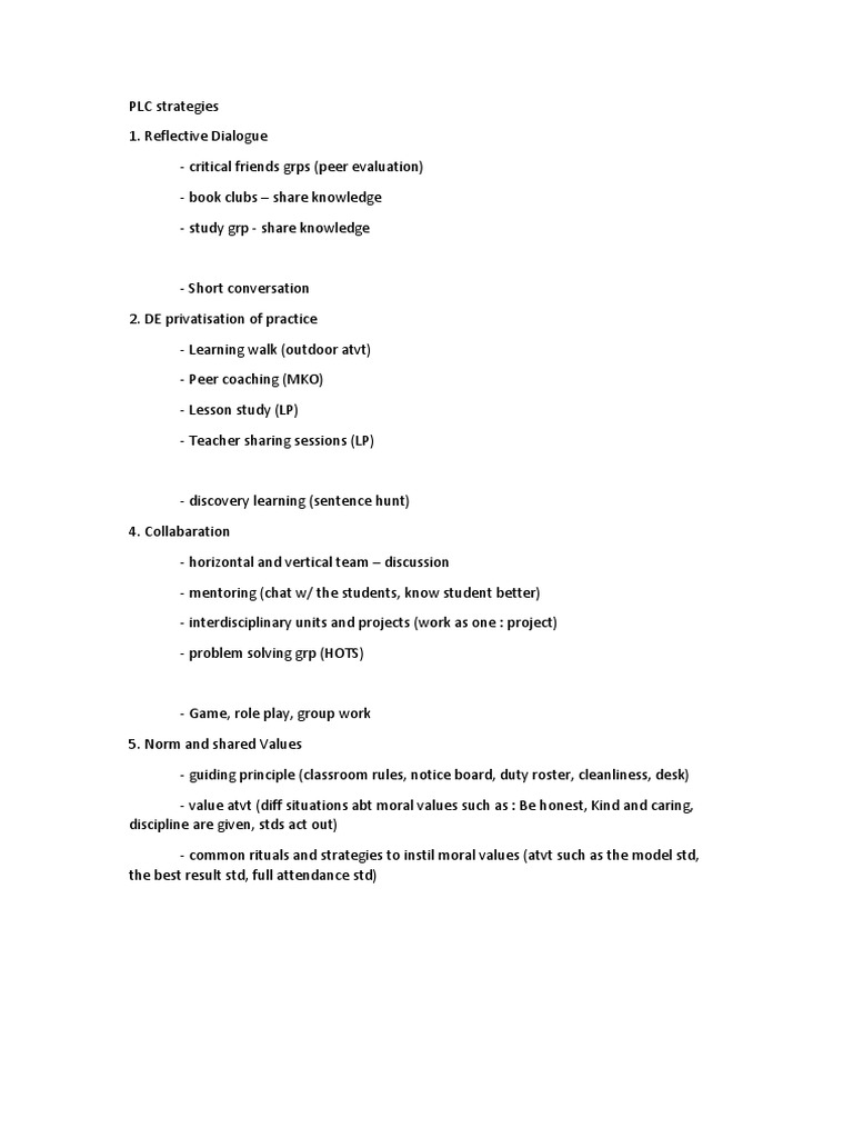 2.0 Teaching Activities Based on Professional Learning Community (PLC) strategies
