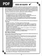 The document discusses the three branches of government and their powers and checks and balances. It asks the reader to identify which branch has which powers and provides examples of checks and balances between the branches. The purpose is to test the reader's knowledge of the US government system of separated powers with checks and balances.