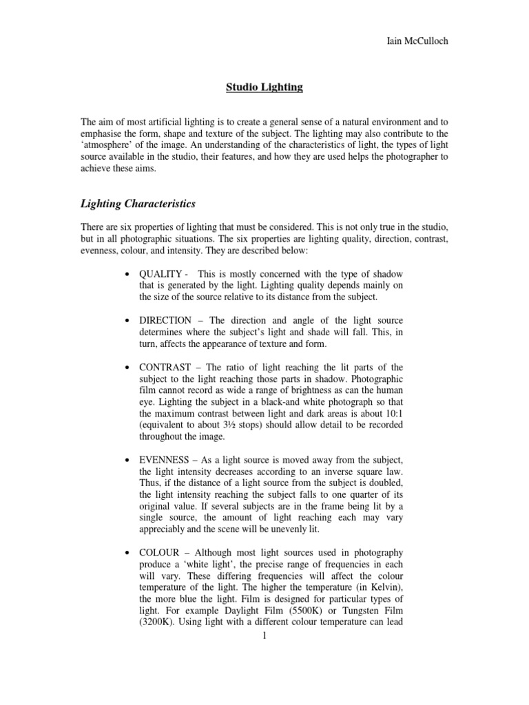 but in all photographic situations. The six properties are lighting quality, direction, contrast,
