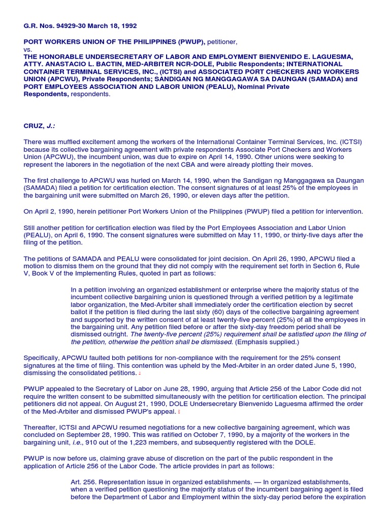 On April 2, 1990, herein petitioner Port Workers Union of the Philippines (PWUP) filed a petition for intervention.