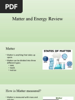 This document discusses the properties and structure of matter. It states that matter has mass and volume, and its structure describes how matter is arranged and composed of. The document contrasts matter with things that are not matter like light, electricity, and heat, which are considered forms of energy.