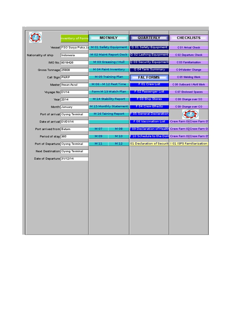 Nationality of ship Indonesia M 02 Maint Report Deck Q 02 Lashing Equipment C 02 Departure Check