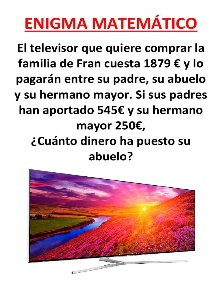 familia de Fran cuesta 1879 € y lo pagarán entre su padre, su abuelo y su hermano mayor. Si sus padres han aportado 545€ y su hermano mayor 250€, ¿Cuánto dinero ha puesto su abuelo?